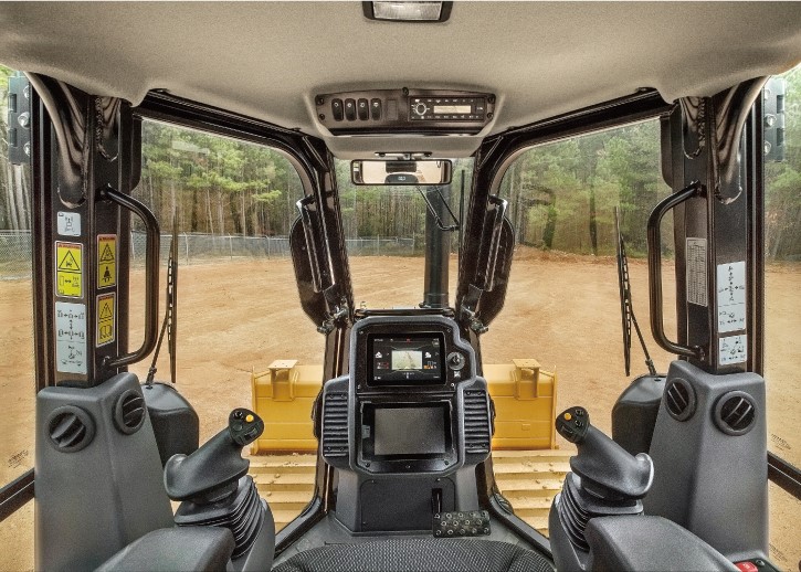 10インチ高解像度タッチスクリーン式モニタを搭載。あらゆる設定をモニタでコントロールでき、機械の状態も常にモニタリングできます。低騒音のROPS/FOPSキャブは、オペレータを保護しつつ前方の視認性も約30%向上させています。また、後方カメラは、トラック幅を表すガイド線付で距離感がつかみやすくなっています。