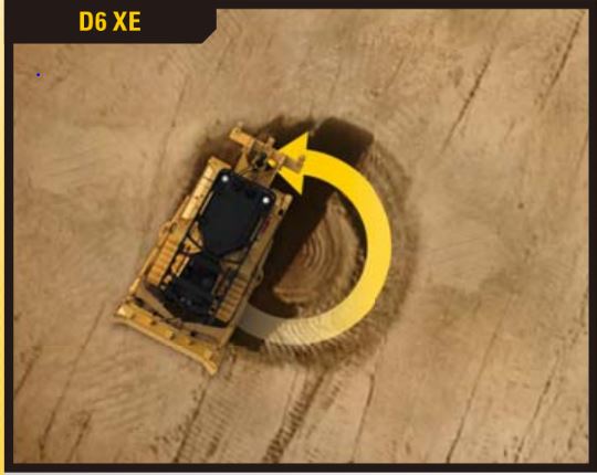 油圧ポンプ、油圧モータにより差動装置を制御する「ディファレンシャルステアリング」を採用左右の両トラックへ最大となるよう駆動力を維持できます。ブレードに荷を抱えたまま鋭くターンできるパワーターンが可能となります。また、ステアリングポンプの大型や新しいソフトウェアの採用により、さらに力強く、鋭くターンできる旋回性能を手に入れています。