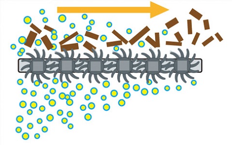 特許取得の清掃機構「クリンスター」内蔵のスクリーンデッキは、1回転毎に隣接軸との間の異物を除去。含水率、性状、形状にかかわらず幅広い素材に対しても高い処理能力を維持し、消耗をおさえ、低ランニングコストも実現します。