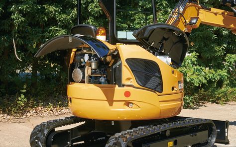 後部と右サイドカバーは開口部が大きなフルオープンタイプでエンジン周りや燃料などの点検整備箇所は地上から安全にアクセスできます。旋回部への給脂は一カ所にまとめた集中リモート式です。