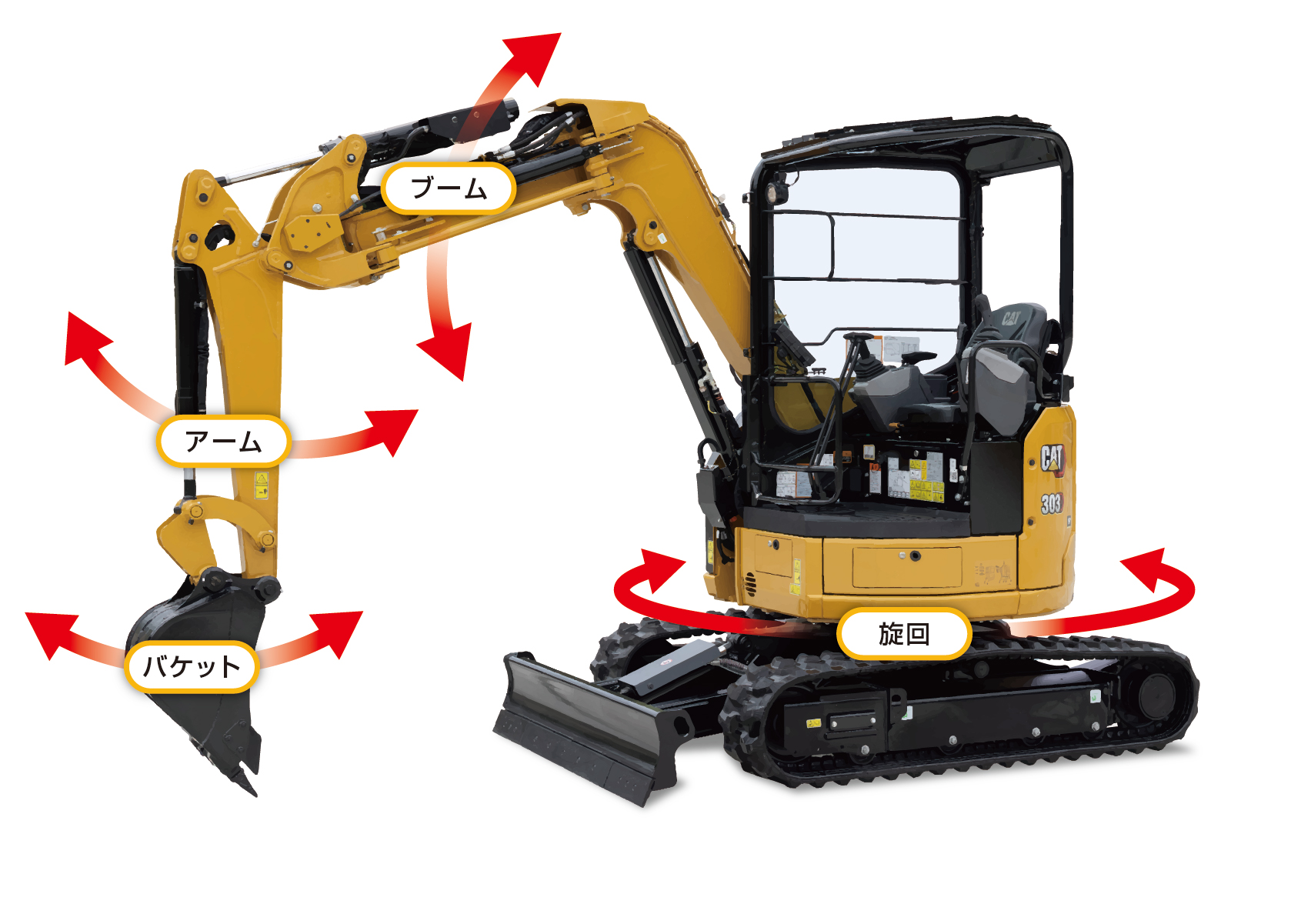 Cat 304 SRは、オフセットブームを装着し優れた小旋回性と小回り性を実現する超小旋回機です。 機体を正面に向けたまま、左右の車幅外掘削ができ、上部旋回体後端だけでなく、フロント作業機も含め小さく回れるため、狭い現場や壁際での作業を高い精度で効率よく、安全に行えます。