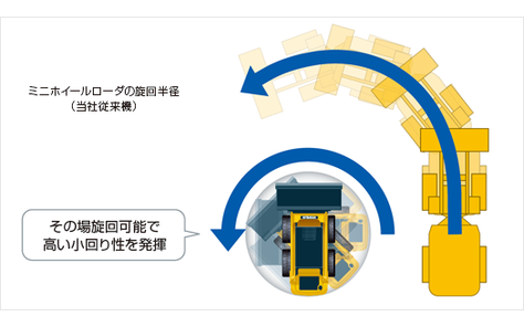 その場旋回が可能で狭い現場で高い生産性と安全性を確保します。