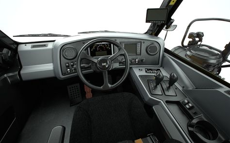 車両のセンターライン上に配置された「センターマウントキャブ」なので地面からの衝撃を低減し、オペレータの疲労を低減。また幅の広いワイドキャブなので居住空間が広く、オペレータの快適性が向上しています。