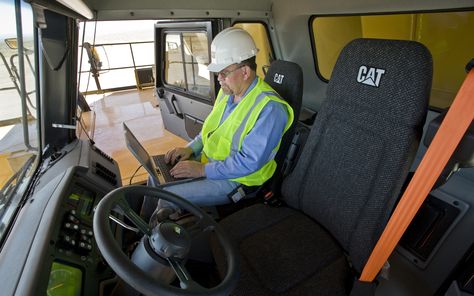 キャブ内は広く居住性に優れています。シートはエアサスペンションシートを採用し、クッション性に優れているので悪路でもオペレータの疲労を低減します。 また、3点支持ベルトやリアビューカメラを装備しており、オペレータと周囲の安全を守ります。