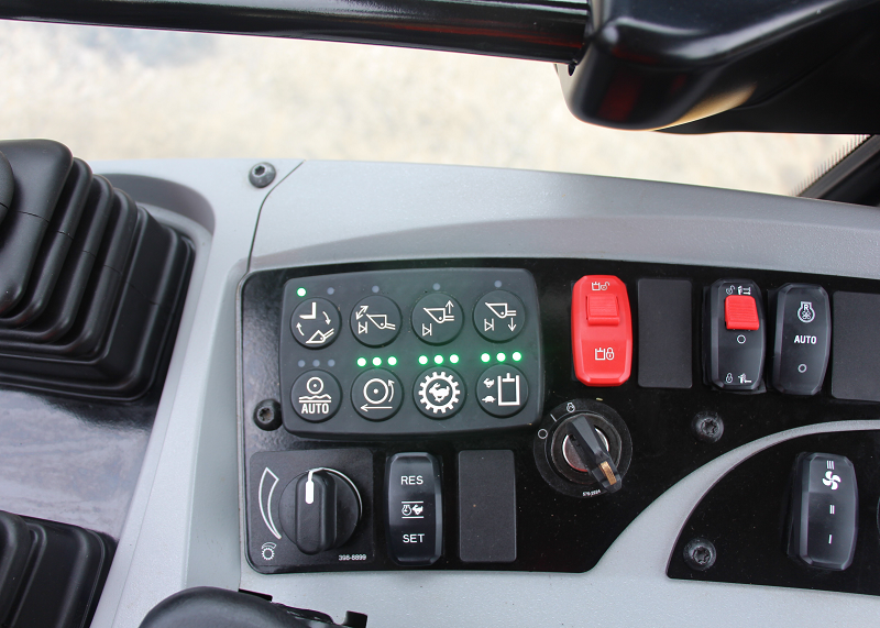 運転席のボタンで簡単に設定できる電子制御キックアウトを装備。任意の作業機ポジションにて、運転席の右コンソールにあるキーパッドスイッチを長押しすれば、キックアウトの設定が完了します。リフトアーム上げ、リフトアーム下げ、バケットチルト(チルトバック・バケットダンプ両方向で有効)でキックアウトの設定が可能で、作業効率を高め安全で、快適な作業を実現します。